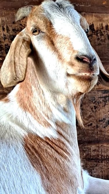 Chester lives on the Grant Farm. He thinks he is quite the Fellow. He gets many visitors in the farm. He loves children the most. He will gladly join anyone in a dance as he loves to show off his moves. He also loves to race the farm four wheeler, riding in the side by side buggy, or going for leisurely walks with the dogs. Chester thinks he is part of the pack. He prefers dogs over other goats!